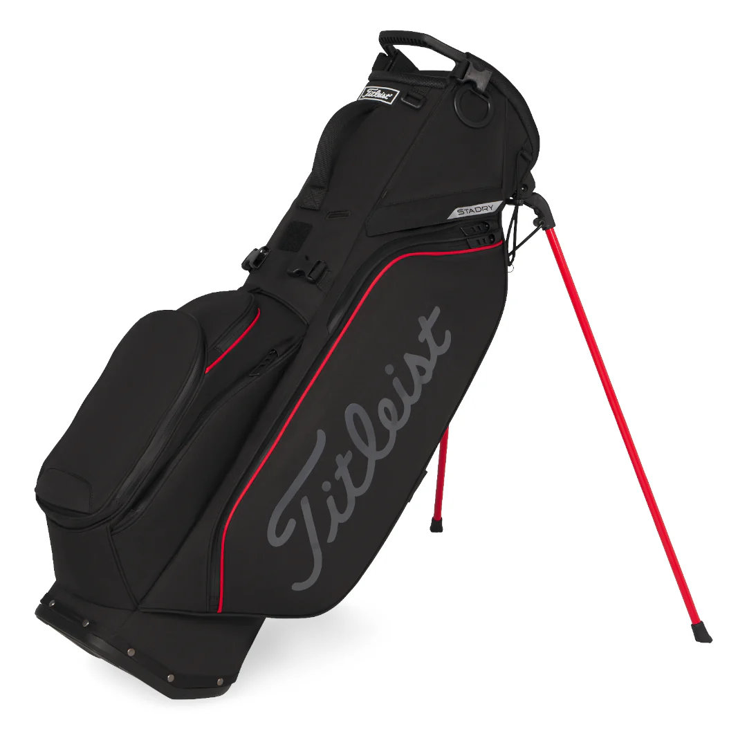 This premium stand bag uses Titleist’s StaDry waterproof build with seam-sealed zippers so clubs and valuables stay dry whatever the weather.